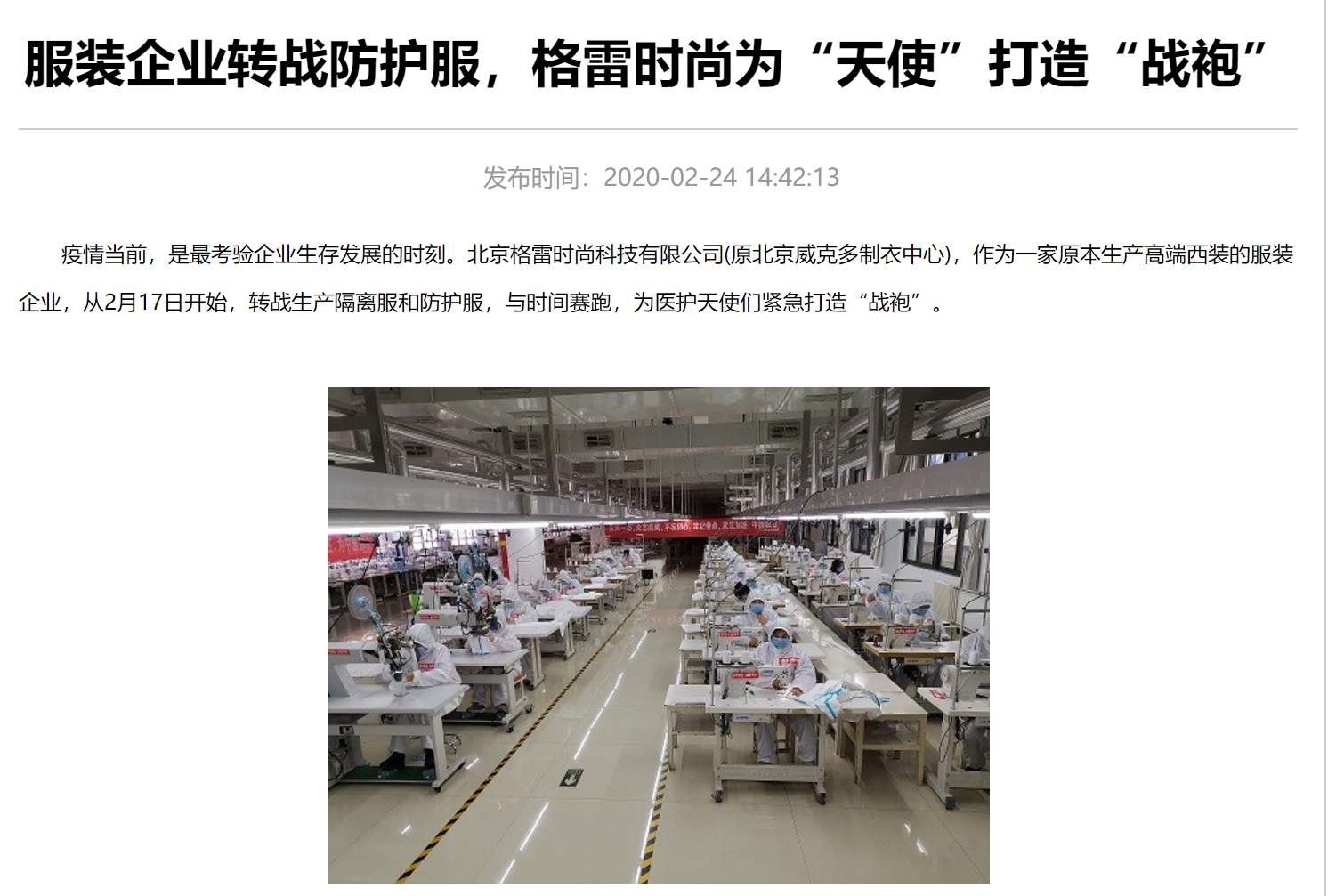 As is known to all, Hebei Grand is a clothing manufacturing enterprise dealing with high-end business suits for men, whose products are commonly seen in the first- and second-tier cities. However, few people know that Grand is also a clothing enterprise with medical equipment production qualification. Knowing that on the frontline of the anti-epidemic battlefield, protective materials are in short supply, Hebei Grand took the initiative to undertake the production task of protective suits, resumed its production and provided support to the frontline of anti-epidemic battlefield. Quite unexpectedly, this move makes Grand go viral. Soon, Grand had a new title of "a men's clothing manufacturing enterprise that manufactures protective suits".
