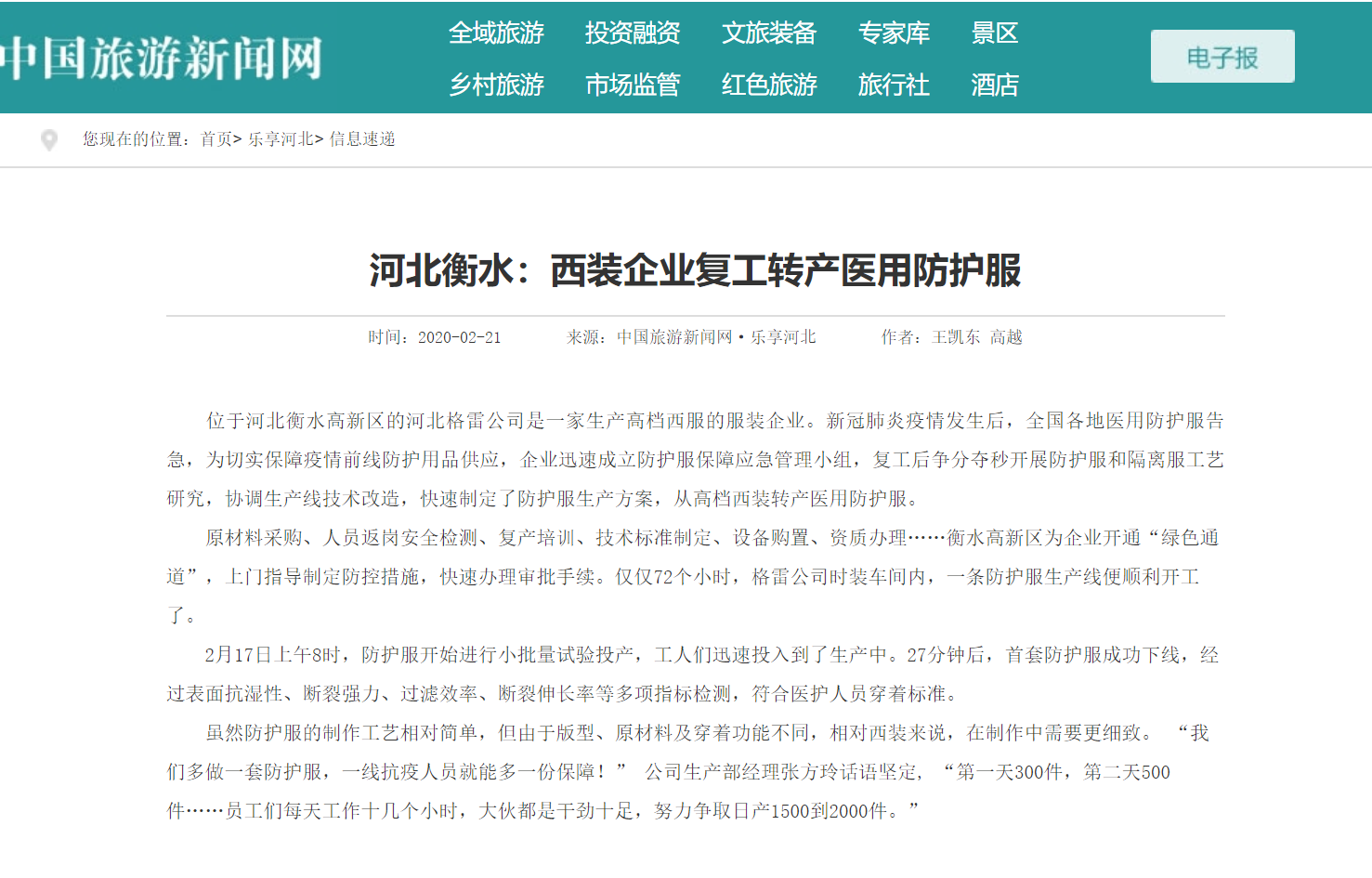 Recently, the news of Hebei Grand's production of protective suits to contribute to the battle against COVID-19 has gone viral on major media platforms both at home and abroad, with a total number of hits exceeding one million. Everyone spoke highly of Hebei Grand's courage and responsibility in this battle.