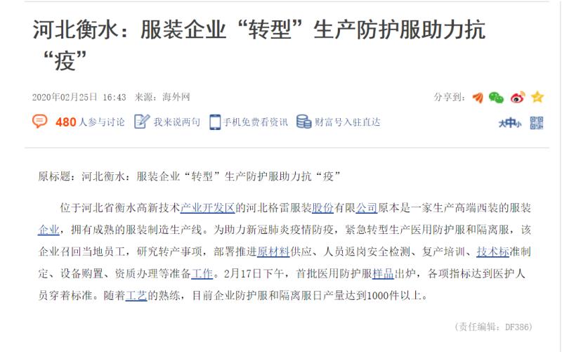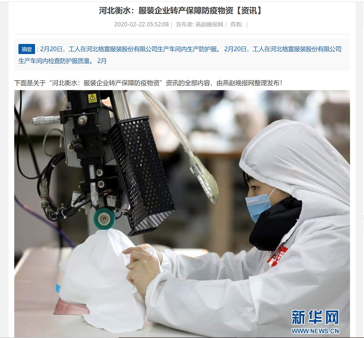 Enter "Hebei Grand manufactures protective suits" on Baidu and click "search", you will get all kinds of news related to Hebei Grand's production of protective suits in the anti-epidemic efforts.
